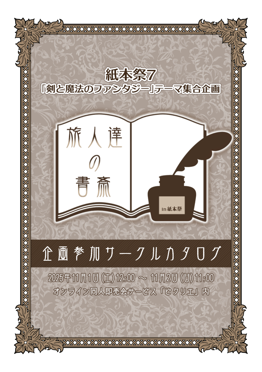 当テーマ別集合企画「旅人達の書斎」は上記イベント「紙本祭7」に参加登録しているサークル様を対象としたイベント内企画となります。詳しくは 企画概要 のページをご覧下さい。